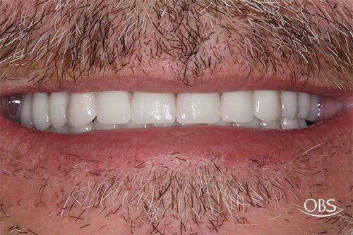 George wanted to be able to eat all of the foods that he loved again. He wasn’t able to eat well because of multiple broken and missing teeth that were causing him extreme pain. We decided to go with the All-on-4 implants process, and it was all completed here at Oak Brook Smiles from the CT Scan to the implants to the final restorations. He was so happy with his new teeth!